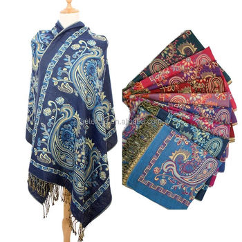 Bán Buôn Retro Thêu Pashmina Khăn Mềm Điều Cashmere Dài Mùa Đông Hoa Thiết Kế Ấm Áp Của Phụ Nữ Hoa Hoa Khăn